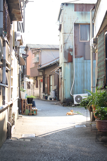 若戸大橋のたもとに位置する若松区中川町は、古いトタン屋根の木造住宅が密集しており、入り組んだ細い路地が特徴的なエリア。まちのメインストリートに面しており、かつては大いに賑わいましたが、時代と共に高齢化が進み、まち全体の約半数が築70年以上の空き家のような状況です。